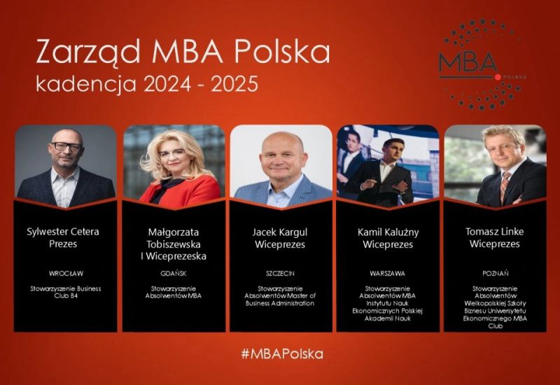 Zarząd MBA POLSKA tworzą obecnie przedstawiciele 5 stowarzyszeń członkowskich. Oto jego skład: